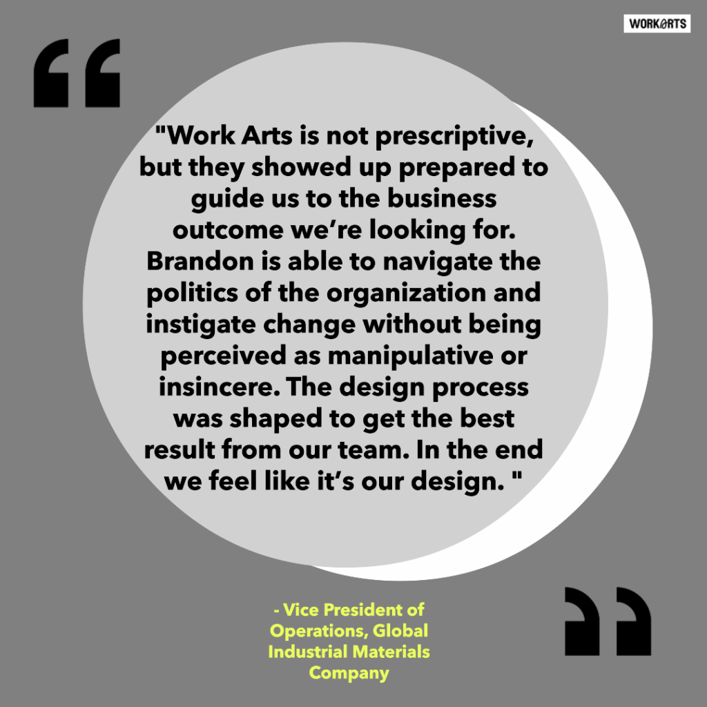 Work Arts helps leaders articulate their performance aspirations, and to recognize and navigate the changes needed to make them reality.